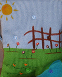 Three Bags Full Finger Puppet Pouches are so fun! We want to own all six sets! Each set consists of a handcrafted pouch with a hand painted scene on it and eight little handcrafted, colorful animal creatures inside! You can choose from six different themes, consisting of Arctic, Farm, Garden, Jungle, Ocean, and Woods. The pouch , with its hand painted scene, acts as a backdrop for any “show”, as the animals are easily attached to the pouch by a simple little snap. They are absolutely beautiful!