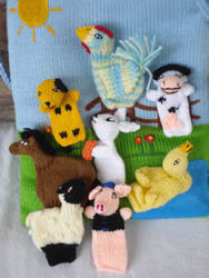 Every bag of puppets comes with an accompanying book list with suggested stories to use with your pouch. After receiving a pouch with farm theme for review, we actually plan on acquiring all of them…eventually. We have checked out some of the suggested story books from our local library, and after reading them, and acting the story out with the puppets just a few times over, I have actually caught my 23 month old daughter playing out the storyline with the puppets, all on her own–without me even reading! Three Bags Full Finger Puppets claim to be appropriate for ages 3 and up, but with proper supervision, my daughter and I both take great delight in these puppets! Sometimes I wonder who’s enjoying them more–me or my daughter?