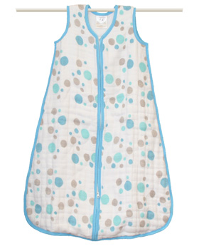 “aden + anais cozy sleeping bags are four layers of muslin, making babies comfortably warm during cold, wintry nights. aden + anais sleeping bags are designed to be worn over a baby’s pajamas, ensuring a safe night’s sleep by eliminating loose crib blankets, which can be dangerous. Muslin’s light, open weave allows a baby’s body temperature to regulate itself naturally helping to prevent overheating. aden + anais sleeping bags offer the ultimate in breathability and softness, as the more the more you wash them, the softer they get. Each sleeping bag zips from the bottom, making diaper changes easy, and a strip of muslin over the zipper by baby’s face provides extra comfort.“
