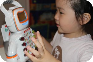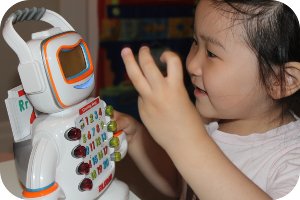 My 3 year old have been with her new playtime buddy, “My Alphie” since day 1. She was ultimately appreciative of the facial expressions this cute robot creates each time she turns it on. She is further encouraged with the friendly voice with warm personality thereby believes she now have a new best friend. Alphie refreshed her learning’s with the alphabet, counting, shape recognition and color identification. In such a short time she and her 2 year old playmate have learned animal names, matching, instrument sounds and even rhyming. Children are like sponge. They absorb everything that they come across. Providing them with the right tool will make it all worth while. My daughter now will not go anywhere without Alfie, and I am glad it have this easy grab feature to keep it from falling unlike her previous toys.