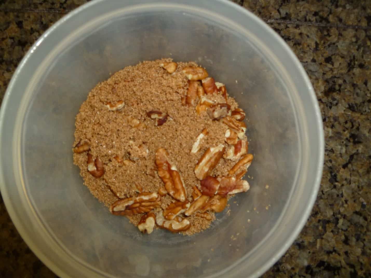 - In a small bowl, mix together the pecans, 2 tablespoons of the brown sugar and the cinnamon.