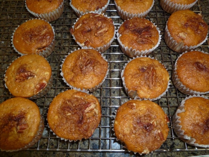 The apple muffins are done and are cooling on a wire rack. They smell delicious!