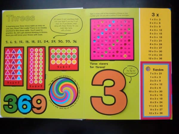 Turn to Learn Multiplication is a fun book that helps teach children their times tables. There is a wheel on the front cover of the book that little hands can spin and watch as the times tables appear. The book teaches times tables 1 to 12, and each page introduces fun and creative ways for children to memorize them. The book is colorfully illustrated with numbers and shapes, and will make it not only easy but also fun for my daughter to learn her multiplication this year. This book is only available in hardback.