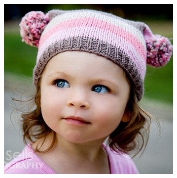 The organic cotton muti color two poms hat I received for review from Beanie Designs is a gem of a hat to have for your little daughter. It is knitted in some very cute stripes of brown, pink, tan, and rose pink. For fun, it has 2 very adorable pom poms which would make your daughter look even more cuter. These two multicolor poms are hand knitted. All of these very special hats are available in sizes of newborns to that of toddlers. Being machine washable, these are easy to care for.