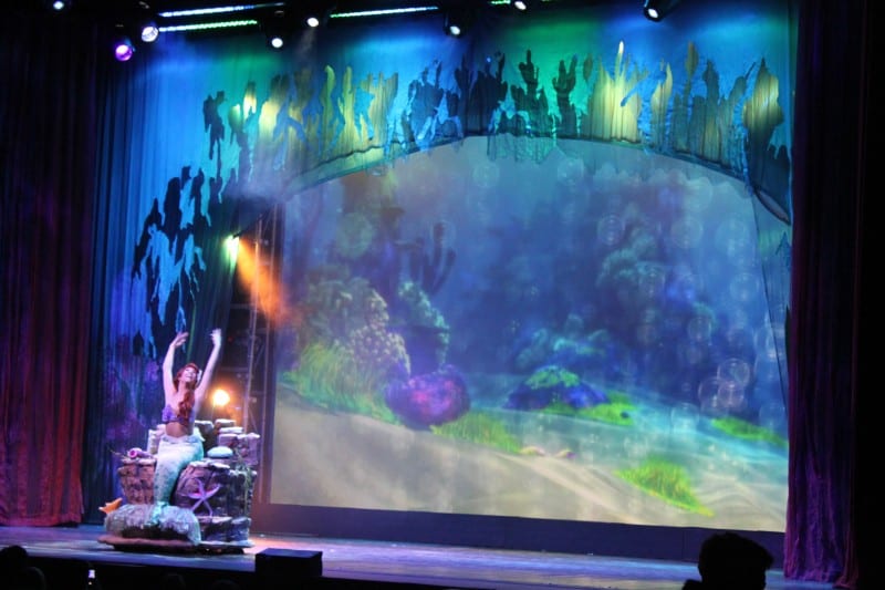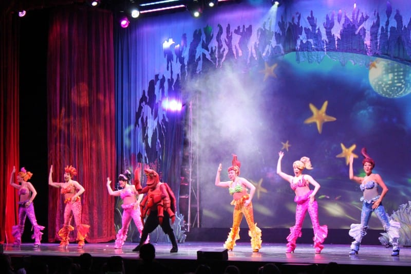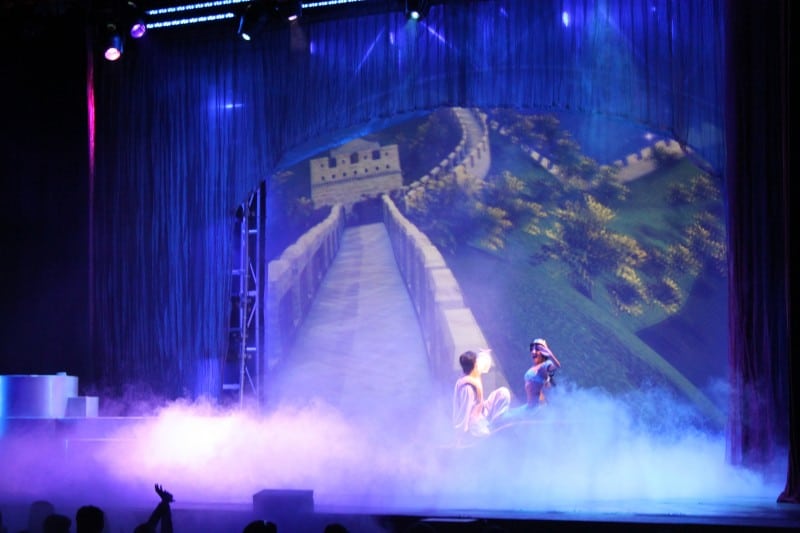 Aladdin amazed everyone with his acrobatic flips while Princess Jasmine ever so elegantly flew around with genie and their magic carpet retelling their story in a wondrous mystical way for all to enjoy. The Little Mermaid and her sisters with Sebastian provided a story of Ariel wanting to be a human so she could be with her loved Prince Eric. In between, each act they provided short intermissions that worked out well perfectly for children of all ages keeping them entertained all the time.