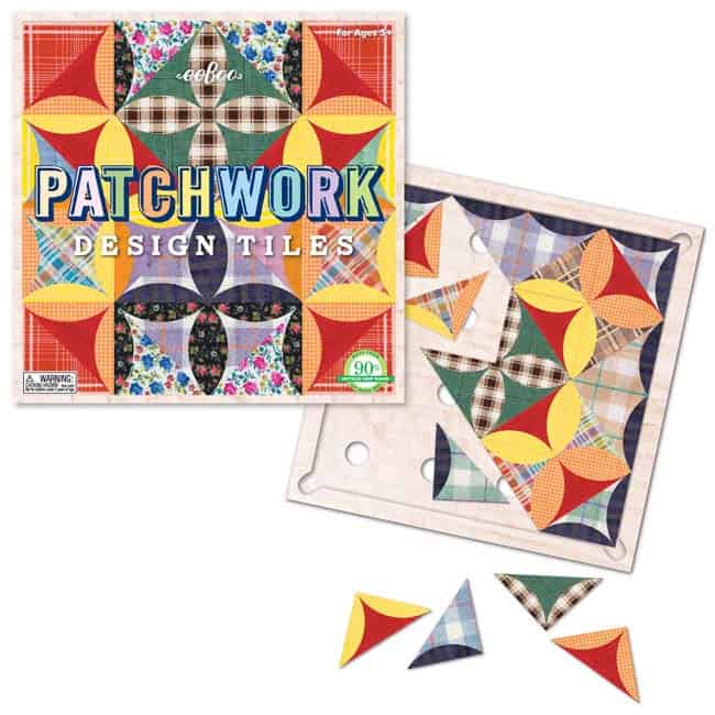 The last item we opened was their Patchwork Design Tiles. I had never had anything like them before. These tiles come in sheets and you need to pop them out. You then assemble them into designs of your choice, creating patterns on the floor or table. Unlike most craft products, these are reusable and are only meant to create temporary designs. It offered the opportunity for unique and somewhat challenging play for my daughter and I found the process of creating patterns to be an almost meditative experience.