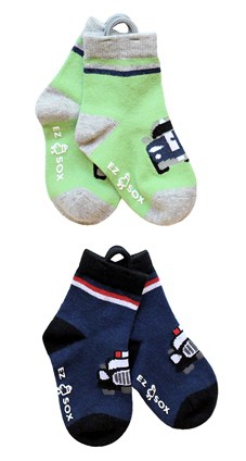 They arrived in a clear package, visible to see. The material was so soft and even a perfect fit. I also found that the sock was just the right thickness. I was so surprised with the design of the Ez-Socks. With the two loops on the side of the sock my daughter could easily dress herself and I welcome this with open arms in the morning preventing me from rushing around. The cars, socks are too cute for words and even stayed on my son’s feet, keeping him very amused while looking at them.