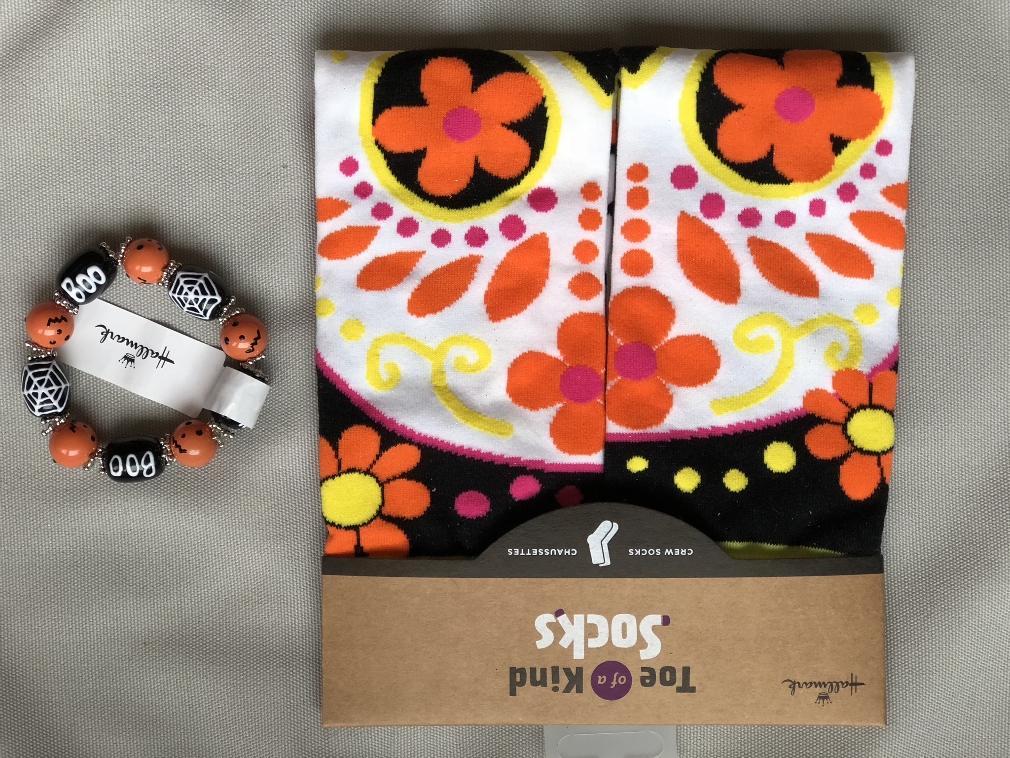 When I’m choosing gifts for children, I try to be practical. Hallmark seems to read my mind so we got these joyful socks in the Halloween spirit. A mixture of cotton and polyester that is easy to maintain, in cheerful colors, with a smiling skull design, is an excellent choice to keep your kids warm and cozy during autumn days.