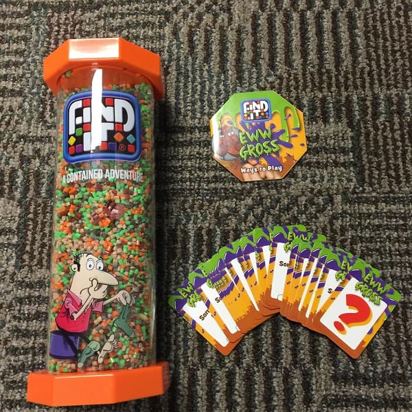 I was given the opportunity to review the Eww Gross version. I will say this game is really gross. Some of the items to find are a booger, road kill, ear wax, a scab, and a spider. There are a total of 40 gross items to be found among the colored pellets.