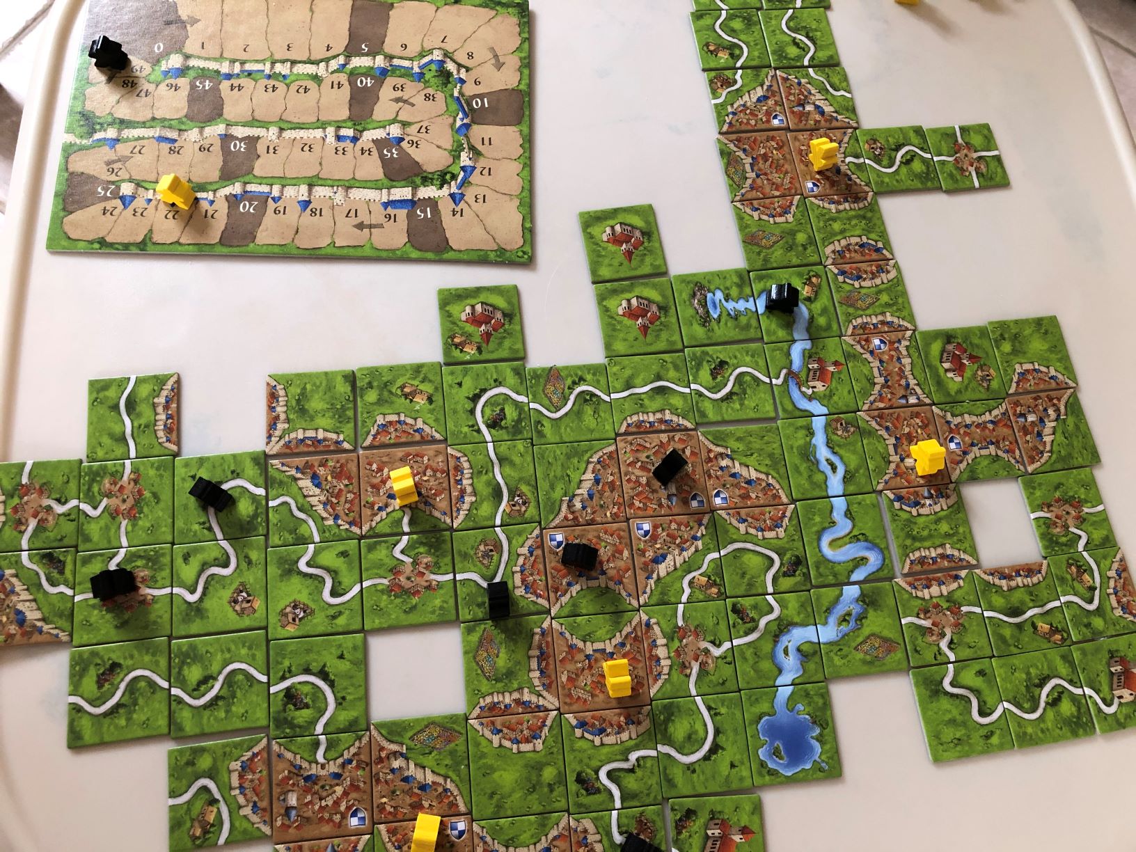 Actually, it is a tile-placement game. The players draw and place the tiles. The players build a french landscape with the tiles. A tile may represent a city, a road, a meadow, or something. And the tiles must be placed adjacent to the tiles that have already been placed.