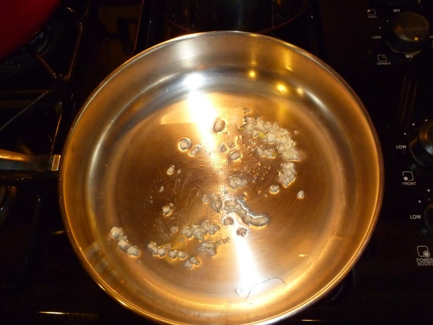 In a large skillet, cook and stir the garlic in oil for 1 minute. My daughter came downstairs during this step and asked what smelled so good!
