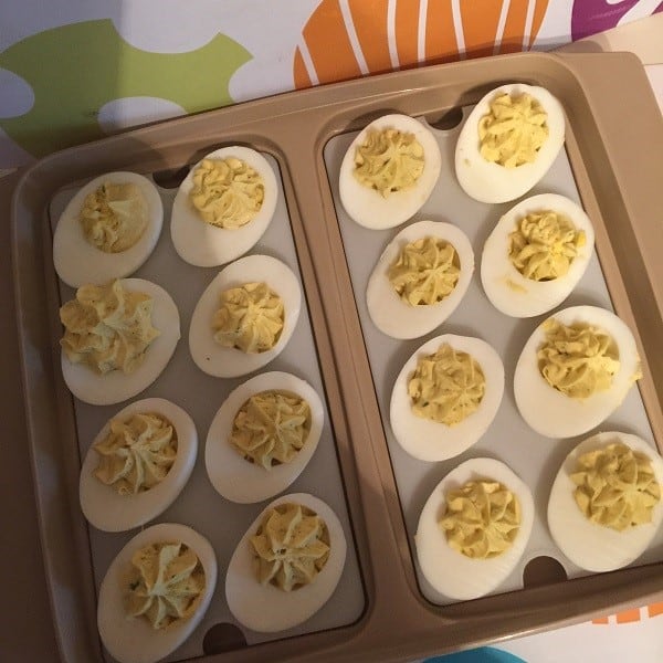 I decided to use the included Easter recipe, which was deviled eggs, my family was very excited to get an early sampling before the Easter season.