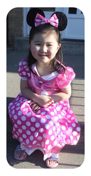 I love her angelic look in this Clubhouse Pink Minnie Mouse costume. The dress is very comfortable to put on and I like the soft sensation of the fabric used in making of the costume. The bright pink color catches the attention of people around and I can see their heads turning back with appreciation in their eyes. How proud do I feel, only a mom can know!