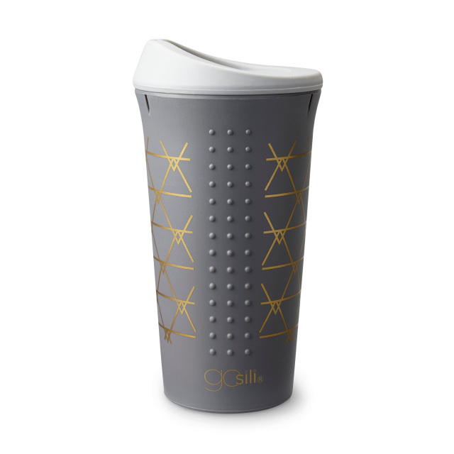 Printed in grey the cup has a neutral and balanced look that soothes your eyes. However, you can also get it in adorable pink and blue. It also fits all cup holders. The cup is dishwasher and microwave-safe. This is also resistant to temperature. You can boil it even.