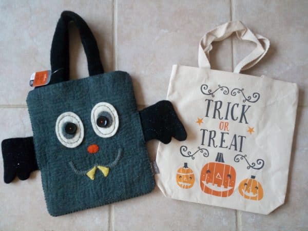 Another wonderful choice for Trick or Treat night is Hallmark’s Canvas Trick or Treat Bag. It is made of a strong fabric featuring autumn colored pumpkins and designs displayed across the front with large lettering announcing its trick or treaters.