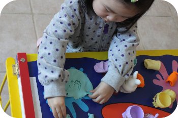 Upon seeing little Bunny and little Chick, I fell in love with them. I got 2 sets in different colors with dough inside to mold and fold. My daughter was so glad to see the dough inside of the bunny and the chick, and the stamper in their feet for fun shapes. The dough contains wheat, no wonder it’s so soft and moldable but not overly sticky, and smells mighty nice too. Not a worry over harmful elements because these are non-toxic.
