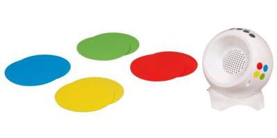 The songs are just so fun to dance to. The whole TWISTER Dance set comes with a light-weight and hand-carry mini dance console that has round shape. It has a speaker in the center with blinking lights around it. There are LED lights with different colors, too. Also, 8 movable TWISTER spots are included which you can put them anywhere you want as you play. There’s two pieces each of colors red, blue, yellow and green which are also on the console.