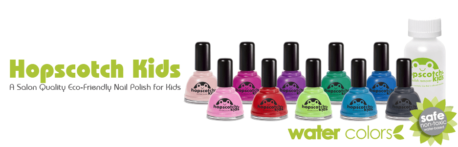 Hopscotch Kids Nail Polish is a Non-Toxic, Water-Based Polish from Lila Natural Cosmetics made especially for tiny fingers and toes. It is phthalate, solvent, paraben and fragrance free compared to what is normally contained in most nail polishes available on the market. All things that this momma of 2 girlies tries to keep out of our home!