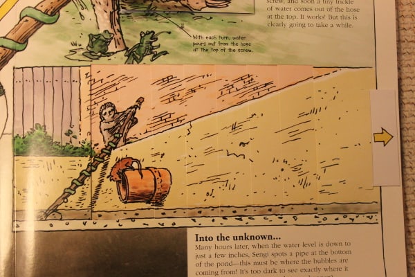 David Macaulay uses models as well illustrations to show how the technology of six different but simple machines work. The comedy is narrated using levers, pulleys, wheel, wedges and inclined planes. The book only has two characters Sloth and his side kick partner Sengi. Their aim is to try as much as they possibly can to find their way out of the zoo with the great help of the different machines. How they try to get out is brought out by pop-ups, lift-the-flaps and pull-outs allowing the young readers to explore deeply how all these machines work.