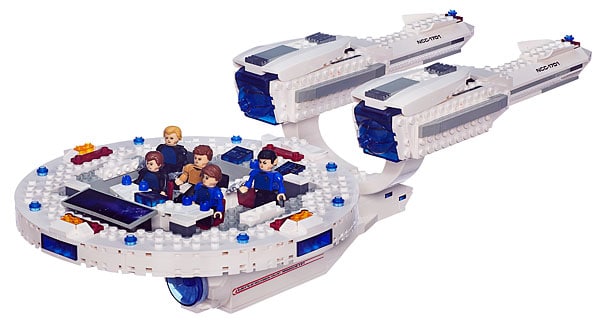 My nephew liked it that they have holes in the back of their legs so that he can attach them to the chairs on the bridge. This was great for him to express himself and build boldly with the U.S.S. Enterprise construction set! Some other small details that are cool are the dish top comes off and you have a cool bridge with seats for all the characters (including a Captain’s chair), a screen with a display of space that goes up and down. This set includes 432 pieces, 5 Kreon figures and instructions which are all great for a child of a bit older age to have tons of fun with.