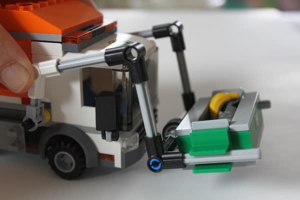 Who needs a toy garbage truck anyway, when there’s a Lego City set for it which is even better? It’s because this garbage truck sure does operate like a real garbage truck! Its truck lift can move up and down to pick up the container and tilt it as well to dump the contents of the container into the orange body. And its body with functional tailgate can tilt and open to empty out the trash. My son can just keep on operating this garbage truck all day, loading and unloading from it any stuff he could find.