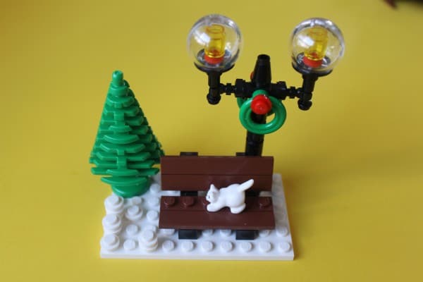 The LEGO Creator Winter Toy Shop features a cheerfully busy toy shop that’s full of beautiful things inside, and a merry atmosphere around it. The delightful Christmas-decorated toy shop that is every child’s dream, is complete with unique accessories: cash register, clock, table, chair, tools and ladder, wreaths, light strings, and a LEGO light brick that sparkles from the toy shop tower! The set also includes pieces for building a great big Christmas tree complete with ornaments, and a big bright star on top. There is also a bench beside a tree and a glowing lamp post where a cat can hang out. And of course, there’s a carrot-nosed snowman!