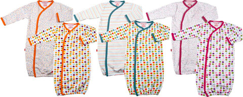 Appearances aside, the Magnificent Baby line is incredibly functional and easy–replacing wasted minutes and frustration with saved time and sanity! You simply line the magnets up and the outfit closes by itself. I know I’ve already said it, but this idea is really amazing! I cannot imagine how many tears the Magnificent Baby clothing would have saved me and Caroline had we bought these earlier. With their cuteness factor and their function factor, the entire Magnificent Baby layette collection is absolutely perfect for gift-giving. Not only will it be the talk of the shower but it will also be the best gift you can give a new mom–she’ll thank you every time she dresses her child in Magnificent Baby!