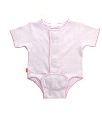 As a mom to a very squirmy baby, I often am very frustrated when I have to change my daughter’s clothes. Immediately upon placing her on the changing pad, she rolls over and starts crawling to the nearest object within reach. My plan to dress her quickly and be on our merry way never materializes and I’m forced to struggle with an 8-month old–who very often crawls around the house in just a diaper because the dressing battle is one I often lose!