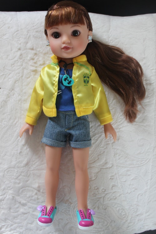 The girls wear outfits that represent their country. There’s Laryce from New Orleans, Louisiana, Zeila from Brazil, Nahji from India, Lilian from Belarus, Tipi from Laos, Dell representing America’s mountains from Kentucky, Consuelo from Mexico, and Rahel from Ethiopia. There are also two deluxe dolls. Dell with a guitar and Consuelo with a jewelry box.