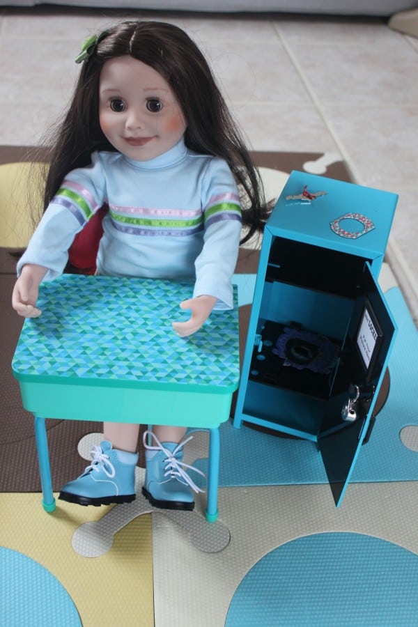 To shake things up a little, we were introduced Taryn’s school desk & Locker which are additional accessories that can be bought for the doll. This is where the homework and school tasks really become easier for my daughter to understand, when she sees how Taryn has to sit down to do her school work, and store her personal things in her locker for safe keeping. My daughter really enjoyed bedazzling the locker with the magnetic stickers that come with the keepsake box to decorate the locker. The fact that it has a working heart shaped lock adds even more excitement. Taryn has to sit down, the smoothly swivel out from her school desk (only once she has done all her “schooling”) and then move over to the locker where she can then swap books, get a jacket or grab a snack that her “mommy” made for her before school.