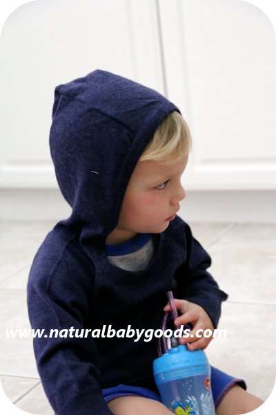 At 22-months old, my daughter still easily fits into the 12-24 month size but her 15-month old boy cousin can also wear it. I was very impressed that this sweet wool hoodie looked great on both kiddos despite their size difference. Its scoop neck allows it to fit easily over a child’s head and the ribbed knit around the wrist cuffs and waist band ensure a slightly-snug custom fit to a child’s body.