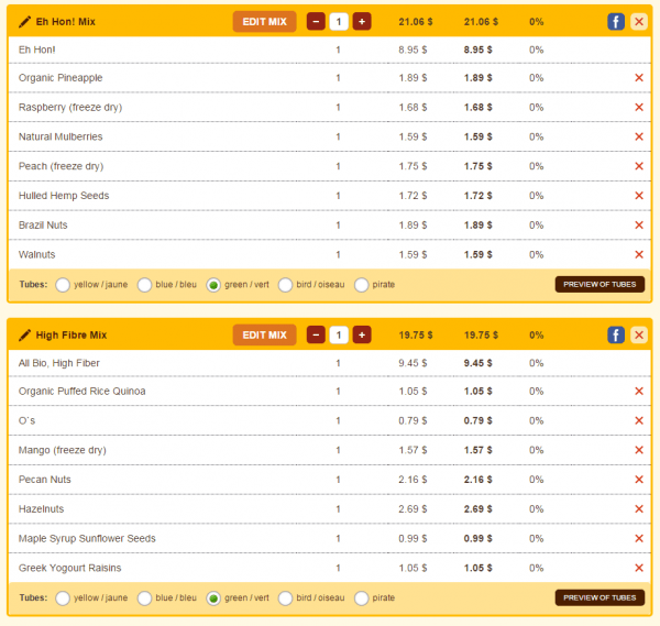 Here you can choose the design of your tube (in different stylish colours and prints) where your cereal mix will be tightly sealed and protected for freshness. And then simply input your payment and delivery details, and you’re done! Shipping across Canada is free for a minimum order of 6 tubes. For less than 6 tubes ordered, delivery fee to Quebec and Ontario is $4.99, and $9.99 to the rest of Canada. Pickup from MixIt partner stores is also free.