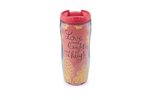 “Love & laughter & hugs” insulated travel mug