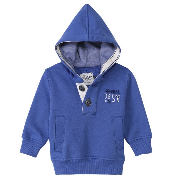 My son’s Toddler JB Hooded Sweatshirt is 100% cotton. It has a lined hood, two metal upper buttons, an embroidered JB label print on the upper left chest, and two roomy side pockets for hand warmth. It’s very easy to wear because the upper buttons are quite big, making the collar spacious enough for my baby’s head to pass through. It’s very simple and classic. I love its purple kind of blue color, almost like cerulean. It’s still a little too big for my son, but as I imagine him wearing it, I can see him looking like a little college varsity guy! This hoodie is made by Jean Bourget, a famous French designer brand for kids’ casual wear.