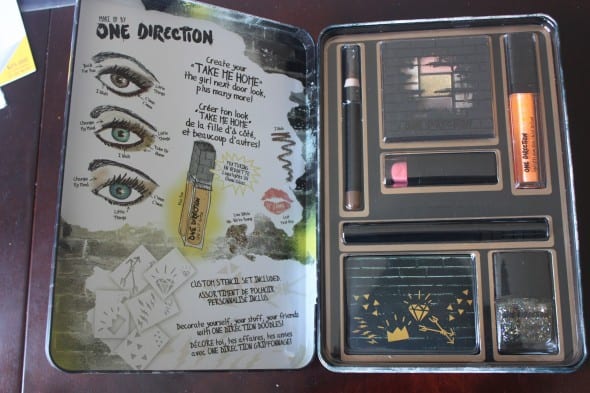 The One Direction make-up line consists of three different tins that contain all of the items you need to pull together a complete look. Each tin is named after one of their hit albums and the make-up inside each is designed to reflect the energy of that particular album. I personally received the Take Me Home tin.