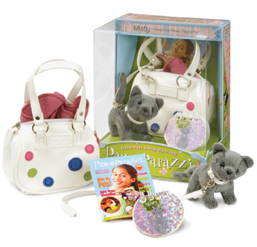 True to Hollywood fashion, the “Misty” kit allows young glamorous girls to tote their precious pocket sized pet in both playfulness and sophistication. It’s fun, frivolous, and ultra trendy! The pet set “Misty” includes wonderful frills that are easily expanded upon, but having included a play cell phone would have been an added bonus and certainly complimentary to the cosmopolitan appeal.