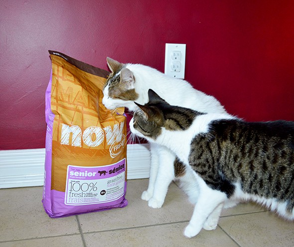 I was excited to try out such a natural product, and was impressed by its ingredients listing, which included nutritious ingredients like 100% market-fresh turkey, salmon and duck. 100% fresh Omega 3 and 6 oils from coconuts and canola. Wholesome berries, fruits and veggies such as peas, spinach, cranberries, pumpkin, blackberries, alfalfa sprouts, kelp, lentils and carrots. The recipe features a balance of proteins and fats to help with weight management, which can be an issue for senior cats, as well as Pre and Probiotics, to support healthy digestion. The Omega Oils are great for promoting skin and coat health, while the addition of Taurine to the recipe is beneficial to healthy vision and heart function and antioxidants help with increased immunity. Not to mention, that NOW FRESH contains no grains, gluten, wheat, beef, corn or soy as well as zero rendered meats, by-products or artificial preservatives! I have to say, reading the product packaging in the store, I was wowed and couldn’t believe I hadn’t heard of the brand sooner!