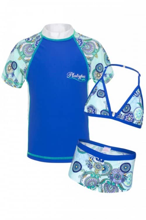 I searched and searched, until I came across Platypus Australia. This company is a front runner in UV protective swimwear for children. As a company started by two moms in Australia who that spent a fair share of their time slathering their kids with sun screen to stave off sun damage, and then decided to take action be designing a comfortable and breathable line of bathing suits and rash guard clothing that would keep kids safe from the sun. I figured that I could trust them. It was a sort of mother-to-mother connection that lead me to check out the selection. Fortunately I was allowed to choose some items for review purpose.
