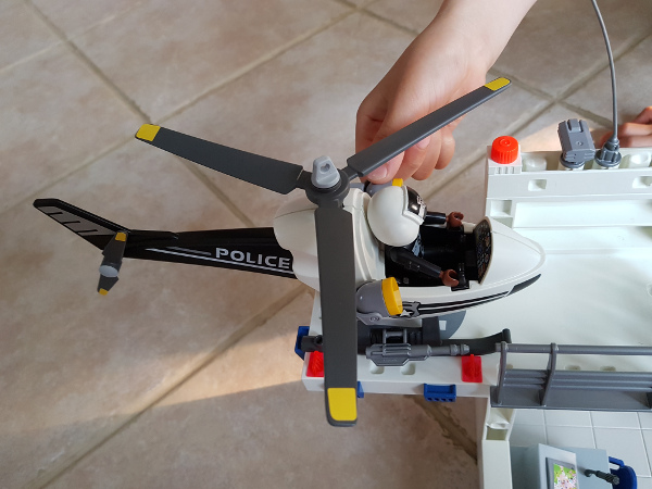 When assembled, the set looks like a lot of fun. Not just for kids but even for me to play with. The Playmobil Police Station set comes with a police station, helicopter pad on the roof of the station, a helicopter, a police car (you can remove the top to insert the figures), four figures, an ATV, safety gear for the figures, a computer, a camera and a tripod, a megaphone and a bunch of other accessories to make play time entertaining and fun for a long time.
