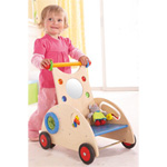 Thanks to Polka Dot Pond to give me and my daughter the chance to experience the Playsam toy. The toy is obviously of great quality. It has a heavy, sturdy feel to it, and it’s so well designed, it almost feels like it belongs on a mantel over the fireplace, instead of in my daughter’s toy room. My daughter loved playing mommy with the little baby buggy, and got on her hands and knees and pushed it all over the room.