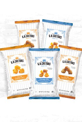 When the G.H. Cretors Popped Corn Sample Pack arrived, we were all pretty excited. Popcorn is a universally enjoyed snack item in my family and we love it in pretty much any flavor. The sample pack included five bags in three different flavors: two of the Chicago Mix, two of the Just the Caramel Corn, and one of the Just the Cheese Corn. Chicago Mix is a combination of the caramel and cheese flavors.
