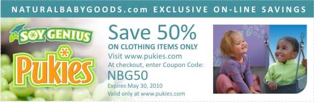 Pukies is generously offering one of Natural Baby Goods readers $25 Gift Certificate and 50% off coupon code NBG50 exclusively to Natural Baby Goods Readers good through May 30.