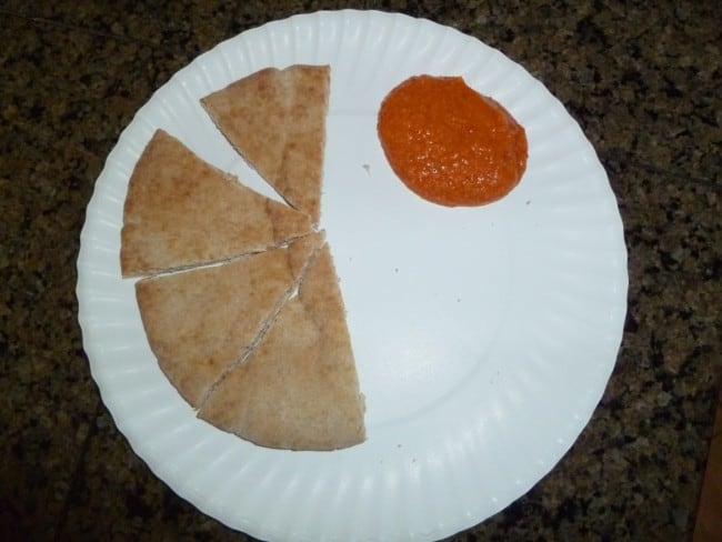 We usually eat the hummus with wheat pita bread pockets, but into triangles. We’ve also had it with pita chips. You can also serve it with heart-healthy crackers or vegetables. It makes plenty of hummus. My 3 kids and I had it for 2 snacks and my son took it with him twice for an afternoon snack in between his college classes.
