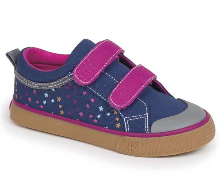 See Kai Run makes a girls’ shoe they call Robyne. It is a sturdy, well-made product of comfortable, breathable materials inside and out. There is extra rubber padding in the toe of the shoe designed for that bit of extra protection that all moms want for their kids. Attention to the fact that there does need to be strong construction of the toe of a child’s shoe gives the shoe a longer life and longer-lasting durability. There are two Velcro straps that make fastening quick and easy. The tongue, as well as the top of the shoe, are made with extra padding which will help to provide long-lasting comfort as my daughter “runs” through her day. The bottom of the shoe is a herringbone construction which will give her the best traction, whether she is walking or running.