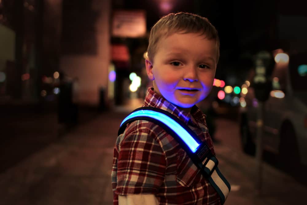 There haven’t been many options when it comes to keeping our children visible and safe at night. You can walk into a store and find a few different types of stickers and some reflective vests, but those are pretty much the only options available. While most kids would jump at the chance to put a sticker on themselves, you run the risk of them falling off. And unless your child is particularly fascinated by construction crews, a reflective vest will seem as dorky to him or her as a fanny pack does to us.