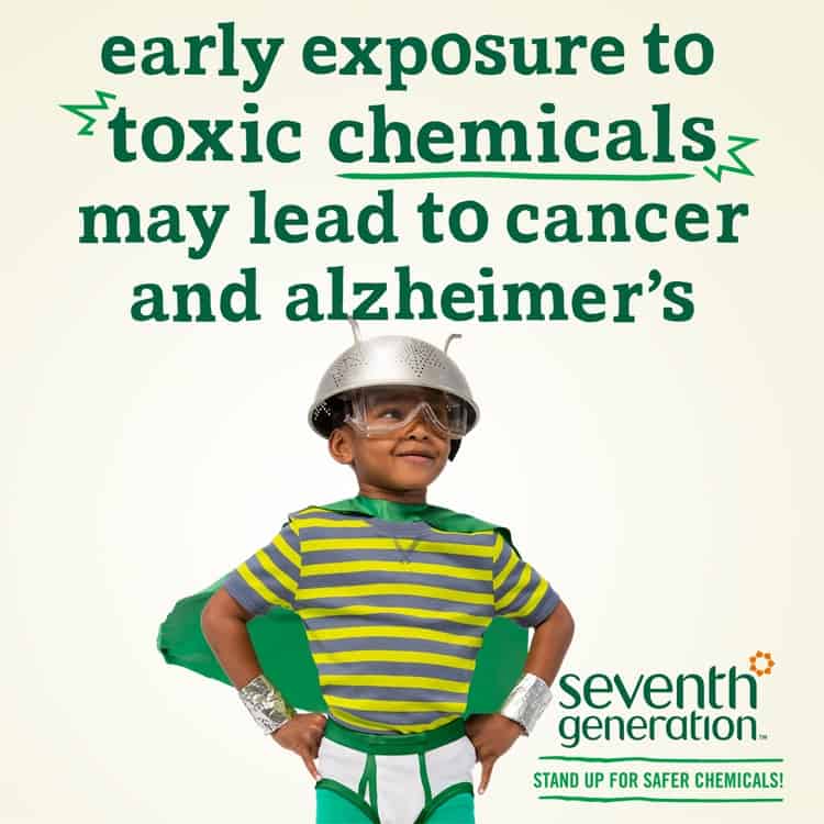 When I was young there was this children’s television show called Captain Planet. In the show, Captain Planet, along with his international gang of friends, would fight polluting marauders and corporations that valued dollars over the ecosystem. Granted, this was fiction but the show did a great job in awakening awareness among a lot of people, including me, just like Rachel Carson did back in the 60s. However, we need more than awareness – we need change. Speaking as a mother of two children, a six year old and a 16 month toddler, I want to write a few words about Seventh Generation’s campaign of not only raising awareness but their attempt to bring about change because as a mother of two I am not taking risks. I also do not think my children, nor should other people’s children, be test subjects. Because that is actually what is going on right now, we buy loads of products that are full of harmful toxins.