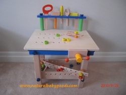 One of their fabulous toys is the Sevi Work Bench. Although there are many children’s work benches or construction toy sets on the market today, none is better than this model. This wooden work bench includes everything you need to make a truly realistic work site. There is a level, wrench, hammer, saw and screwdriver. Also, there are several wood boards for “making things” and several size screws. Any child would feel like a real Bob the builder with this kid’s work benches.