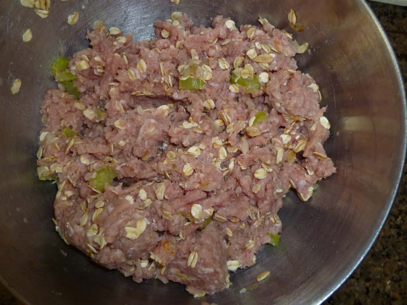 - Place turkey in a large bowl. Add onion mixture, egg and oats. Use your hands to gently but thoroughly blend ingredients. Dampen hands lightly and form mixture into about 20 meatballs, each 1 ½ inches in diameter.