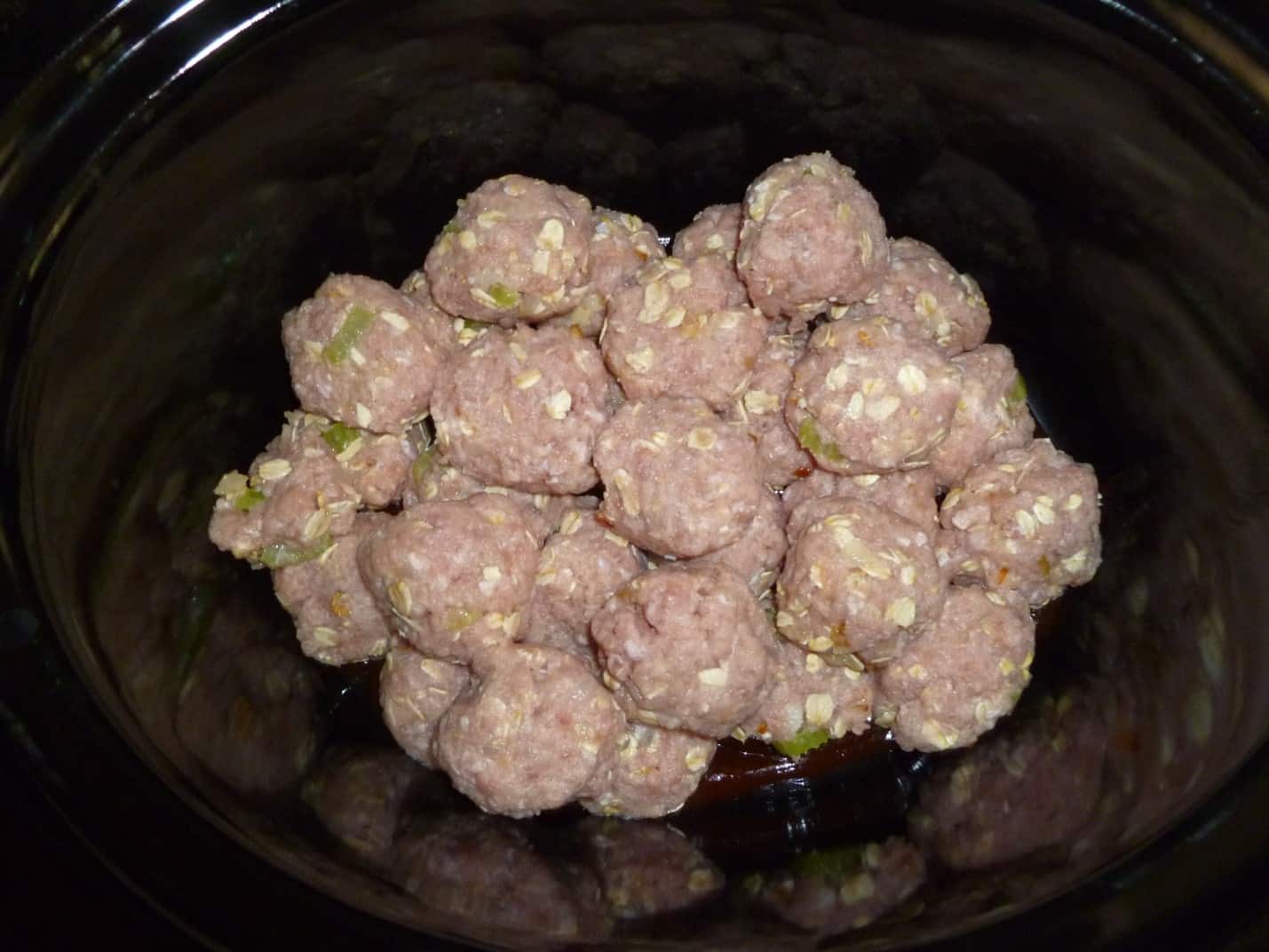 Pour a small amount of sauce over bottom of slow cooker. Add meatballs.