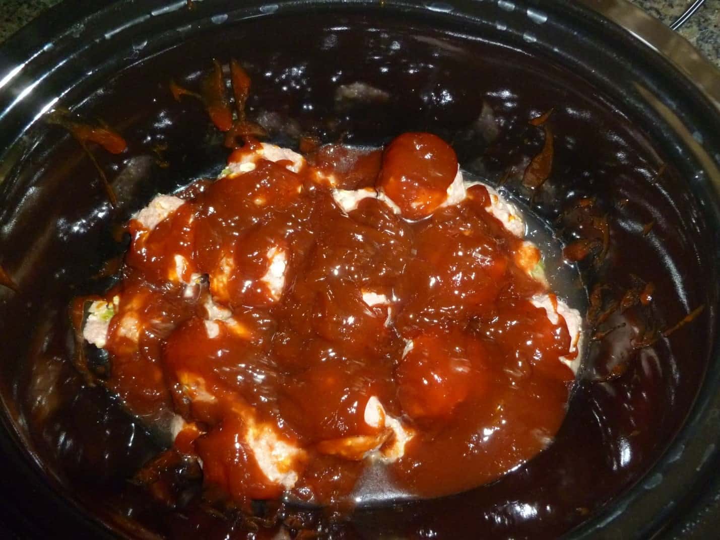 Top with remaining bbq sauce. Pour in ½ cup water. Cover and cook on high until meatballs are cooked through, 3 ½ to 4 hours.
